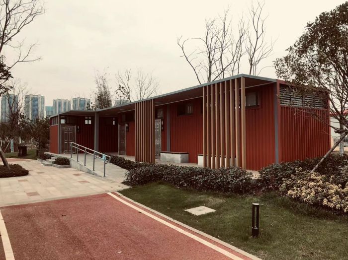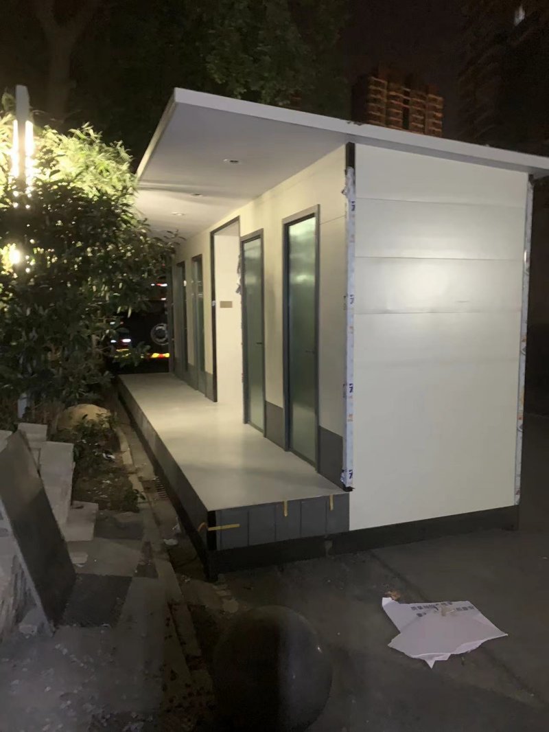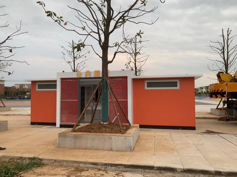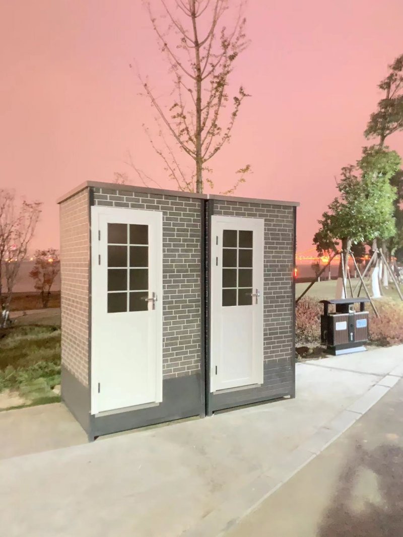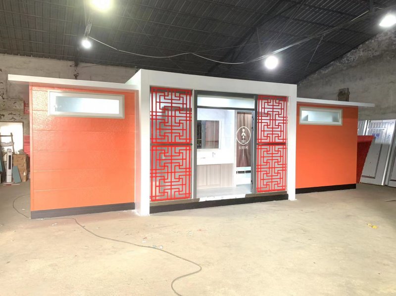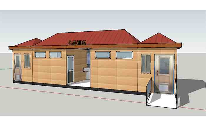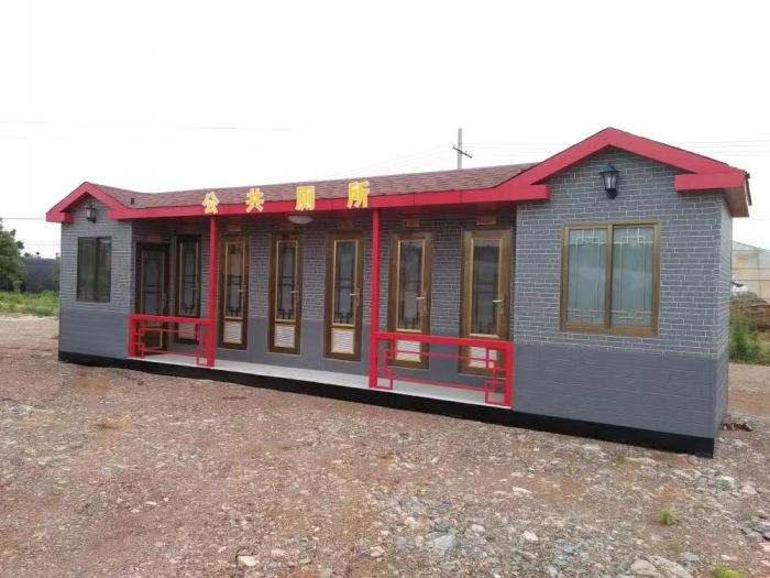 拼裝廁所;在廠里做好各個(gè)廁所部件,再到現(xiàn)場(chǎng)組裝在一齊,適合不易運(yùn)輸?shù)拇笮蛶?。這座箱式廁所,女廁5個(gè)蹲位內(nèi)配工具間,男廁2個(gè)蹲位+2小便斗,第三衛(wèi)生間由殘疾馬桶、助力洗手盆和兒童馬桶、兒童洗手盆外加?jì)雰号_(tái)等設(shè)施。廁所前后有窗,通風(fēng)采光,前部走廊裝有屋檐,防雨防曬。此廁所位于公路綠道邊,整體大氣,功能齊全,造型美觀,是一道難得的靚麗景觀!